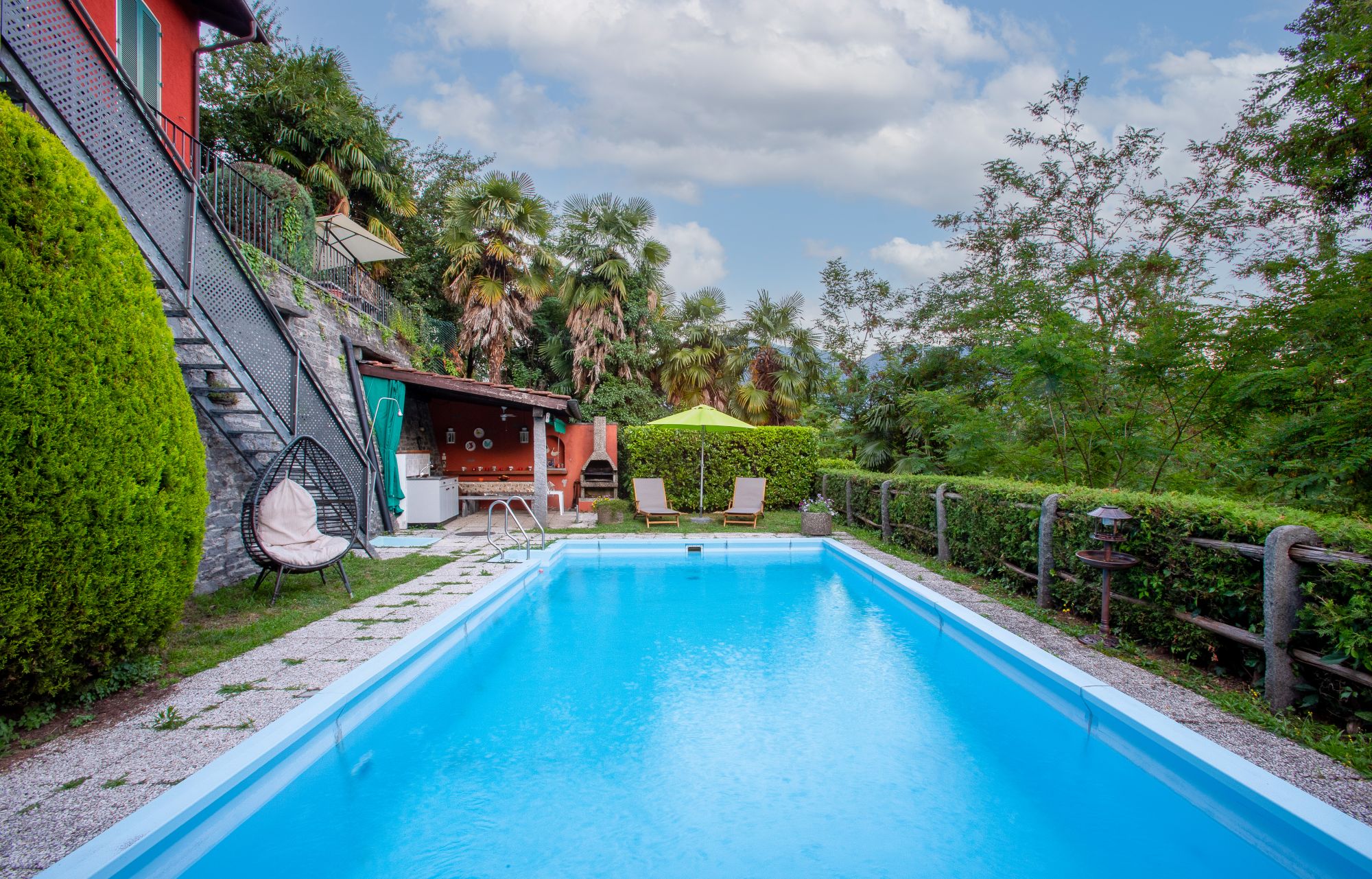 A little piece of paradise just a stone's throw from Locarno. A large private swimming pool with a garden, parasols, deckchairs for sunbathing, a grottino with a kitchenette and a grill for our guests: the ingredients for a pool party are all there!